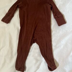Soft and cozy brown pajama set. Full-length zipper for easy wear. Perfect for bedtime comfort.