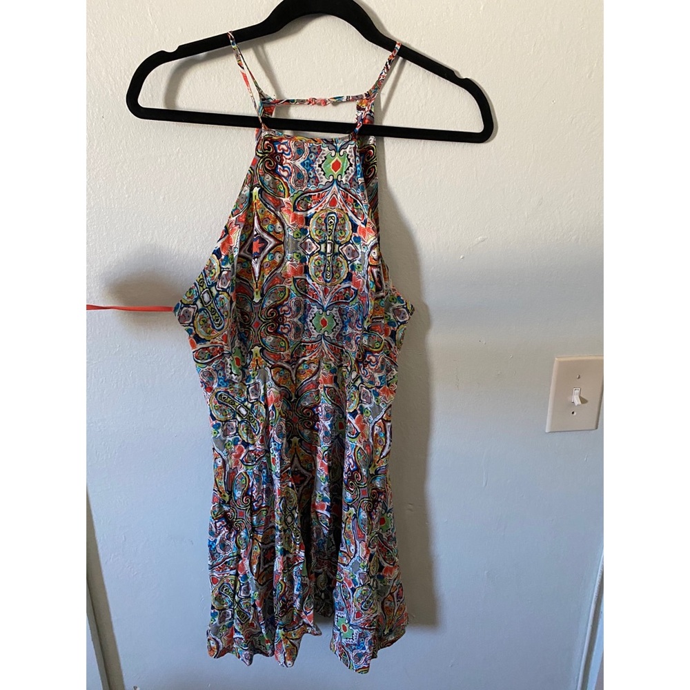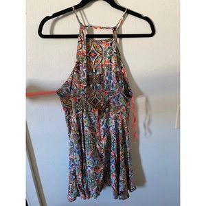 Never worn Colored Pattern Mini Dress with back cut out Size Medium