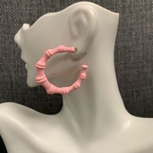 Ladies super cute coated colored textured bamboo style hoops. Excellent condition. Made from hypoallergenic nickel and lead free metal. New with tags and lightweight!