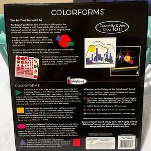 Everything fits neatly in the sleek oversized box, featuring the original logo and Colorforms story on the back.