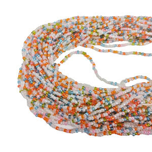 Colorful 30 Strand Multi Strand Seed Bead Boho Statement Necklace 16" Ball Close