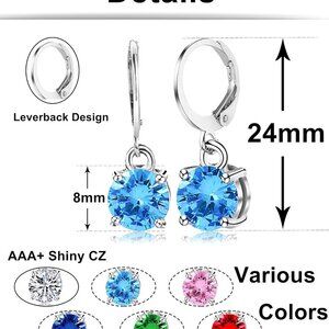 Brighten up your jewelry collection with this colorful set of 6 leverback drop earrings—perfect for every occasion! These earrings feature big, shiny 8mm cubic zirconia in vibrant colors, giving you a lovely splash of color and sparkle. The delicate leverback style makes them super easy to put on and comfortable to wear all day or night. Crafted from copper, they're lightweight yet durable, making them ideal for daily wear or special events. Whether you're dressing up for a wedding or adding a fun pop of color to casual outfits, these earrings are versatile staples. Plus, they make a thoughtful gift for friends or family who love a bit of sparkle and color.