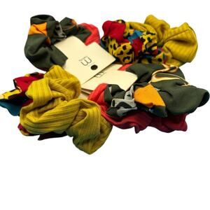 Vibrant 8 piece scrunchie set with mixed patterns. Includes red, yellow, and green tones.