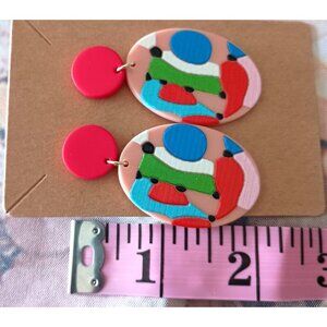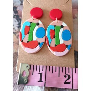 Colorful Abstract Art Oval Dangle Earrings Artsy Statement NEW NWT Gift