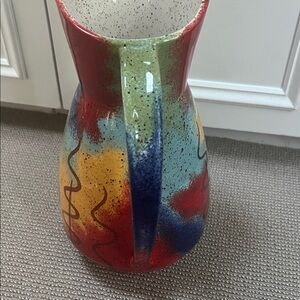 Add a splash of color to your home with this vibrant ceramic pitcher. Featuring a stunning blend of red, blue, green, and yellow, this piece is perfect for art lovers.