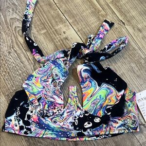 Vibrant and stylish crop top with a unique abstract design. Perfect for adding a pop of color to your wardrobe.