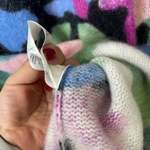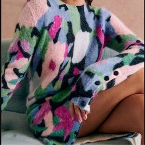 Embrace vibrant style with this colorful abstract knit dress. Perfect for any occasion, this dress features a playful mix of colors that will make you stand out. Long sleeves with buttons, no pockets, knee length.