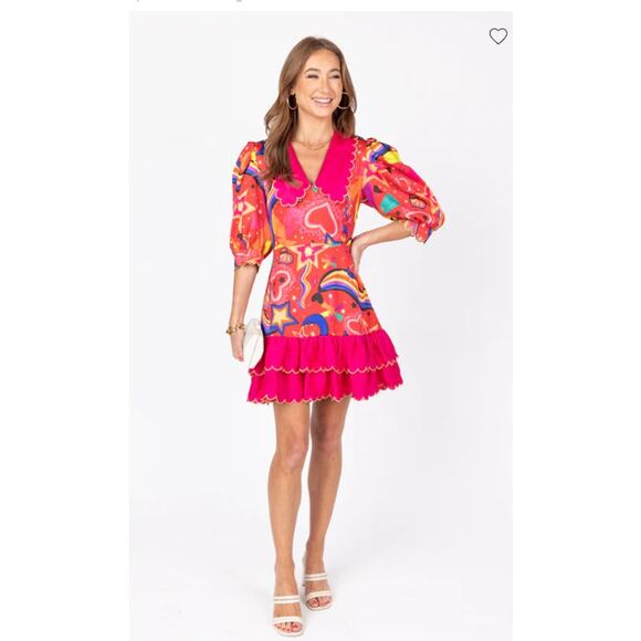 Make a statement with this colorful abstract midi dress. Featuring a vibrant design, it's perfect for any occasion.
