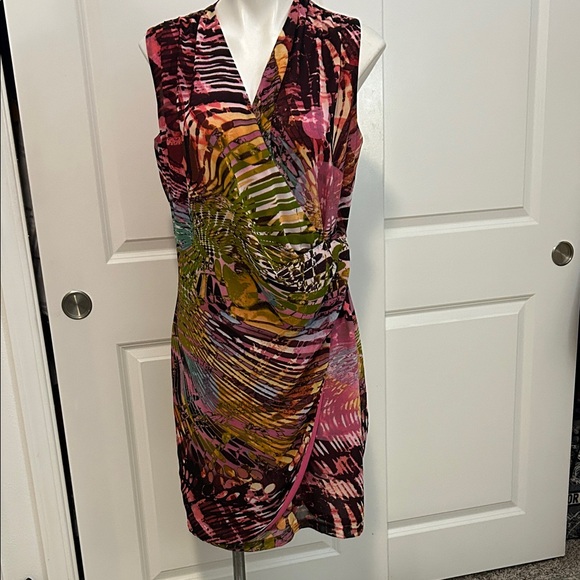 Embrace bold style with this colorful mini dress featuring a unique abstract pattern. Perfect for making a statement.