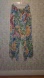 Vibrant pants with an abstract pattern. Features red, green, blue, and orange colors.