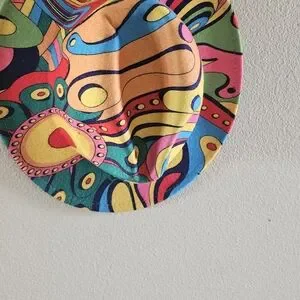Vibrant hat with an abstract design. Features bold colors for a standout look.