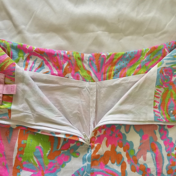 Lilly Pulitzer Skort. NEW without tags. Size 00. Bright Vibrant colorful shades in a floral print. Pull-on construction with a back zippered one-button closure. Attached shorts. Two side zip pockets with the logo palm charm.
