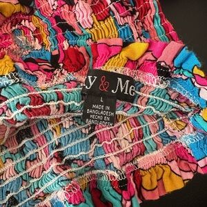 Vibrant and stylish, this crop top features a colorful abstract print. Perfect for adding a pop of color to your wardrobe.