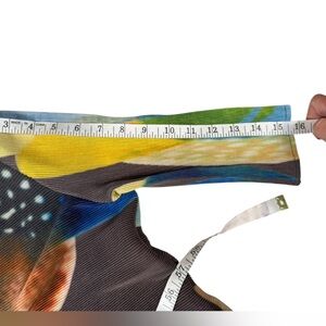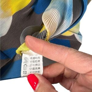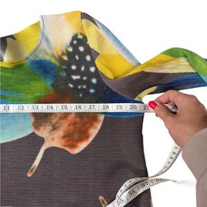 Brighten up your wardrobe with this vibrant, artsy abstract print tunic dress! The soft, pleated fabric is lightweight and stretchy for an easy, comfortable fit. Eye-catching colors and feather/leaf-like patterns give this piece a unique, artistic look. Perfect for layering or wearing on its own as a statement dress.