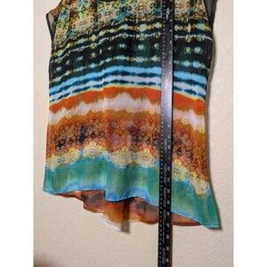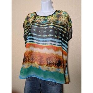 Colorful Abstract Sheer Blouse Size PXL Made in USA Festival Artsy Retro Flowy