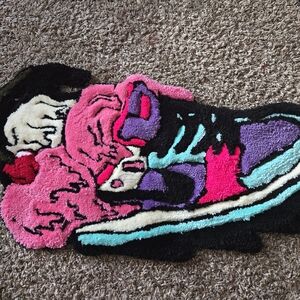 Handmade Tufted Vibrant abstract sneaker-shaped rug with bold colors. Perfect for adding a pop of color to any room. Trendy and Cute!