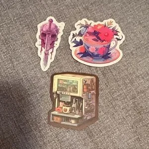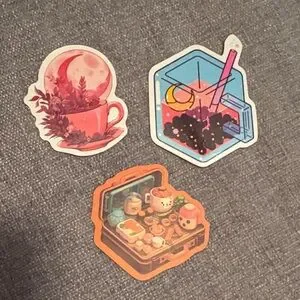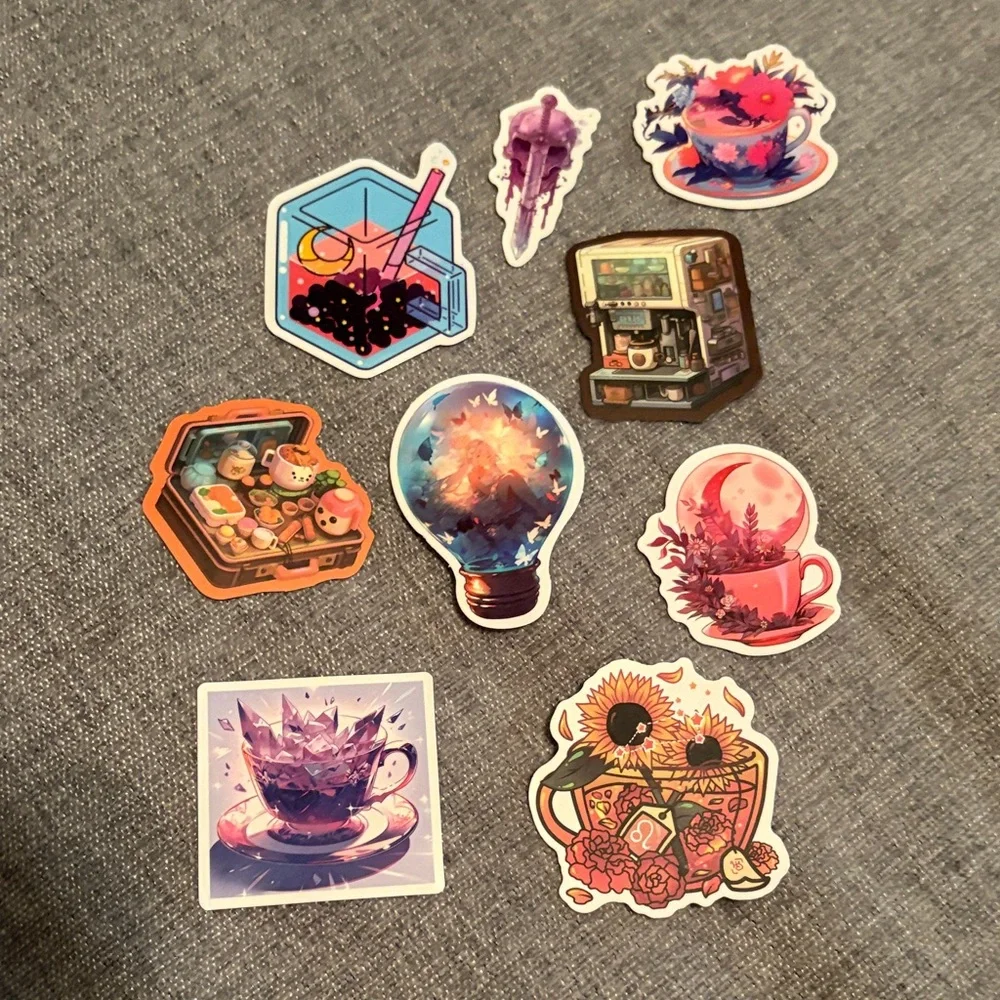Vibrant and artistic sticker set featuring various designs. Perfect for decorating notebooks, laptops, and more. 9 stickers :)