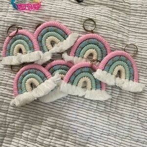Brighten up your outfit with this colorful accessories set. Featuring a variety of vibrant colors, these pieces are perfect for adding a playful touch to any look. Very y2k.