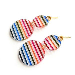 Tags: Circle Drop Earrings , Acrylic Rainbow Earrings , Striped Earrings , Colorful Acrylic Earrings , Bright Color Earrings, Acrylic irregular geo circle drop earrings.