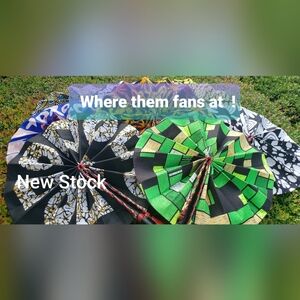 Vibrant and stylish hand fans perfect for any occasion. Featuring a mix of colors including black, green, and yellow, these fans add a touch of elegance to your ensemble.