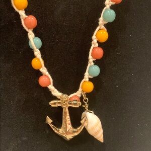 This vibrant jewelry set features a necklace and matching earrings adorned with colorful beads and an anchor charm. Perfect for adding a pop of color to any outfit.