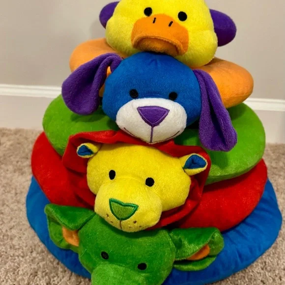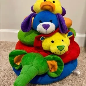 Brighten playtime with this colorful animal stacking rings toy. Featuring vibrant colors like blue, green, and yellow, it's perfect for imaginative play. Encourage learning and fun with this delightful toy.