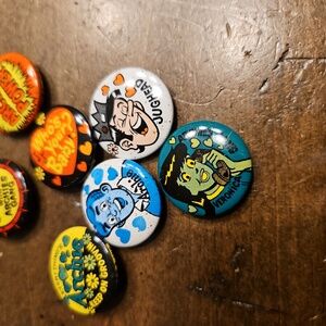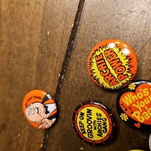 Set of colorful Archie Comics pins featuring various characters and slogans. Perfect for fans and collectors.(8) different 7/8" diameter. Dated 1970. 55 yrs old