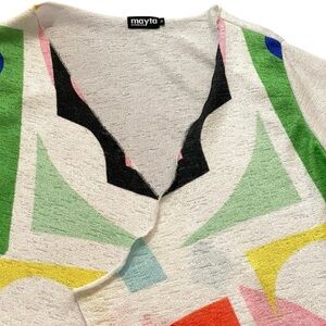 Colorful Artsy Geometric Print Cardigan Sweater Cotton Lightweight Knit Size M
