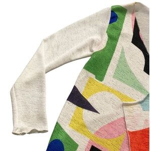 Mayta & Co Moda & Arte-Art to Wear Colorful Open Front Cardigan Sweater~ Asymmetrical Hem Abstract Print