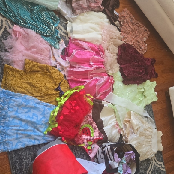 A vibrant collection of assorted dresses in various colors and styles. Perfect for any occasion. princess clothes a mix of everything 6 bags of clothing!