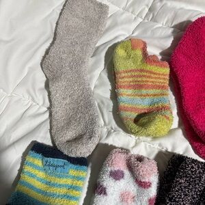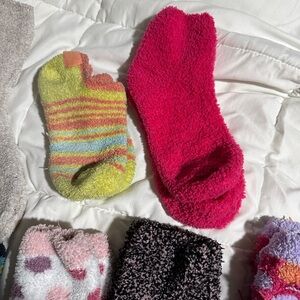 A vibrant collection of assorted comfy socks featuring various patterns and colors. Perfect for adding a pop of color to your wardrobe.