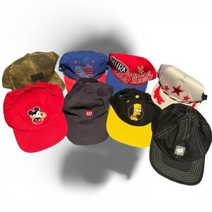 A vibrant collection of baseball caps featuring various designs and colors. Perfect for casual wear.