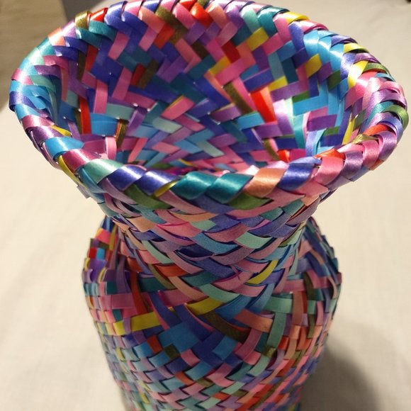 Basket weaved in beautiful colors. Height 10 inches Width 6 inches. NWOT