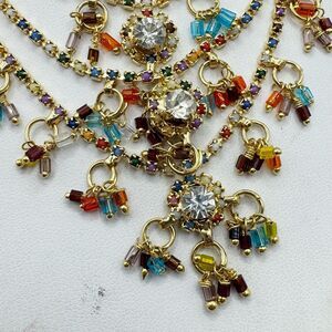 Colorful Bead And Rhinestone Gold Plated Bollywood Indian Necklace And Earrings