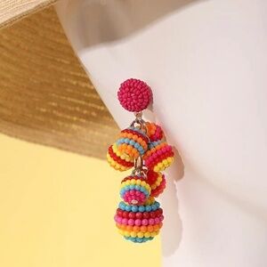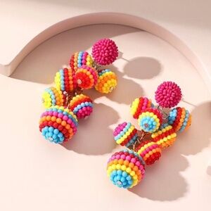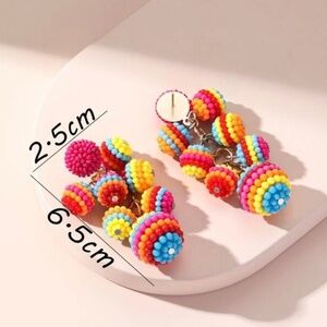 Colorful Beaded Ball Drop Earrings Multicolor Rainbow Festival Boho Resortwear