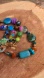 This vibrant beaded bracelet features a stunning array of colors, perfect for adding a pop of color to any outfit. The intricate design showcases a mix of blue, green, purple, and brown beads, creating a unique and eye-catching accessory.