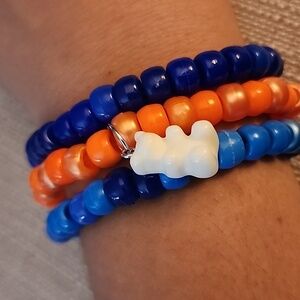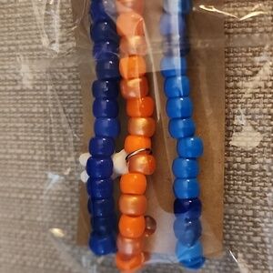 Brighten up your outfit with this vibrant beaded bracelet set. Featuring bold blue and orange beads, these bracelets are perfect for adding a pop of color to any look. Ideal for playful and stylish kids.