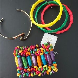 Colorful Beaded Bracelet, gold arm band & 3 rasta bangles Set