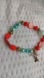 Vibrant bracelet featuring red, turquoise, and gold beads. Includes a unique charm for added style.
