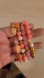 Set of four vibrant beaded bracelets that were handmade by Kay of Kayandkira. These bracelets feature pink, orange, and gold beads. Perfect for adding a pop of color and style to you wardrobe.