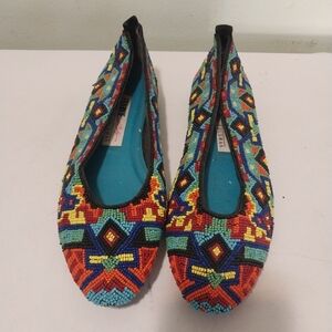 Step out in style with these vibrant beaded flats. Perfect for adding a pop of color to any outfit.