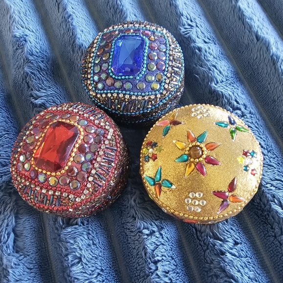 This exquisite set of beaded jewelry boxes features vibrant colors and intricate designs. Perfect for storing your precious items in style.