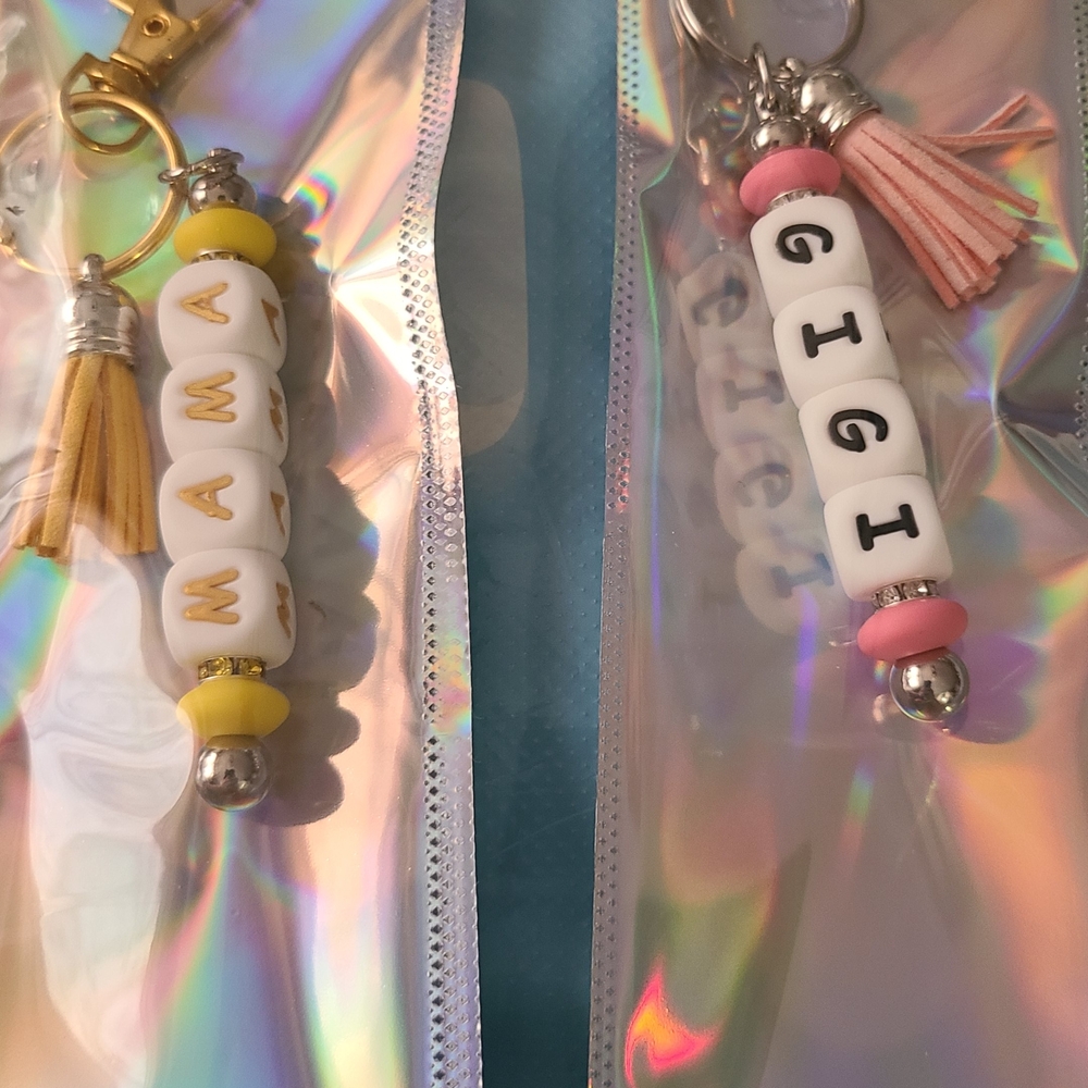 Gigi keychain to brighten up your accessories with this colorful beaded keychain set. Perfect for kids, these keychains feature vibrant beads and playful designs.