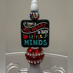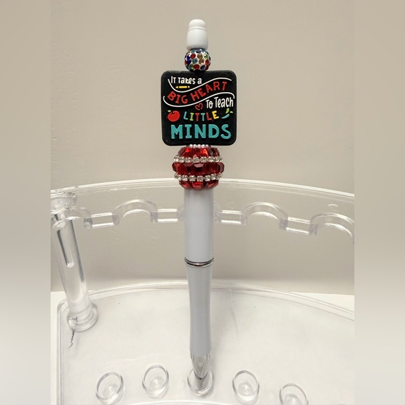 Decorative pen with a teacher-themed topper. Features red and white fancy bead accents and a silicone bead that says “it takes a big heart to teach little minds.” brand new and never used. If interested in more than 1, please comment so I can provide a 2 for deal. Would you prefer colors to be changed or have a request for a style? Let me know! All pens come with an extra ink refill and some other goodies with purchase.