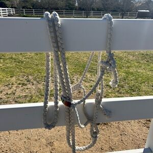 Horse size white halter and lead attached with beaded nose band. Stunning set