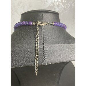 Colorful Beaded Statement Necklace With Purple & Blue Gems Adjustable Length
