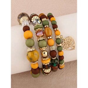 Colorful Beaded Stretch Charm Bracelet Set of 4 Earth Tones Crystal Layer Casual