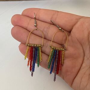 Colorful Beaded Gold Dangly Earrings - Perfect for Pride or Rainbow Fans!