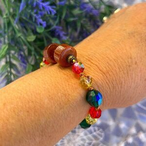 What a wonderful mess! Strong stretch cord. Shown on a 6.75” wrist which is a perfect fit bit could probably go a little either way because of the stretch cord. Funky Fun!