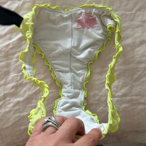 Stylish bikini set with a unique design. Features light blue and yellow colors. Vintage Victoria secret